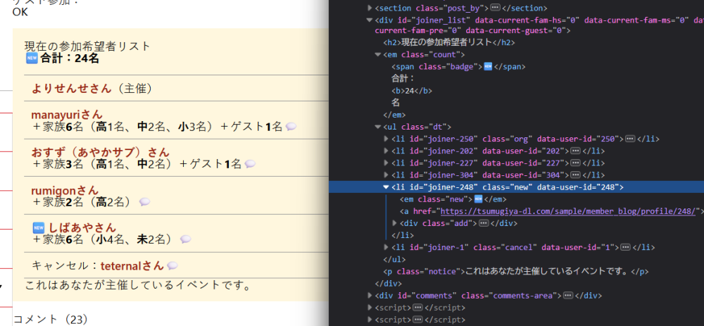 自分でコメント